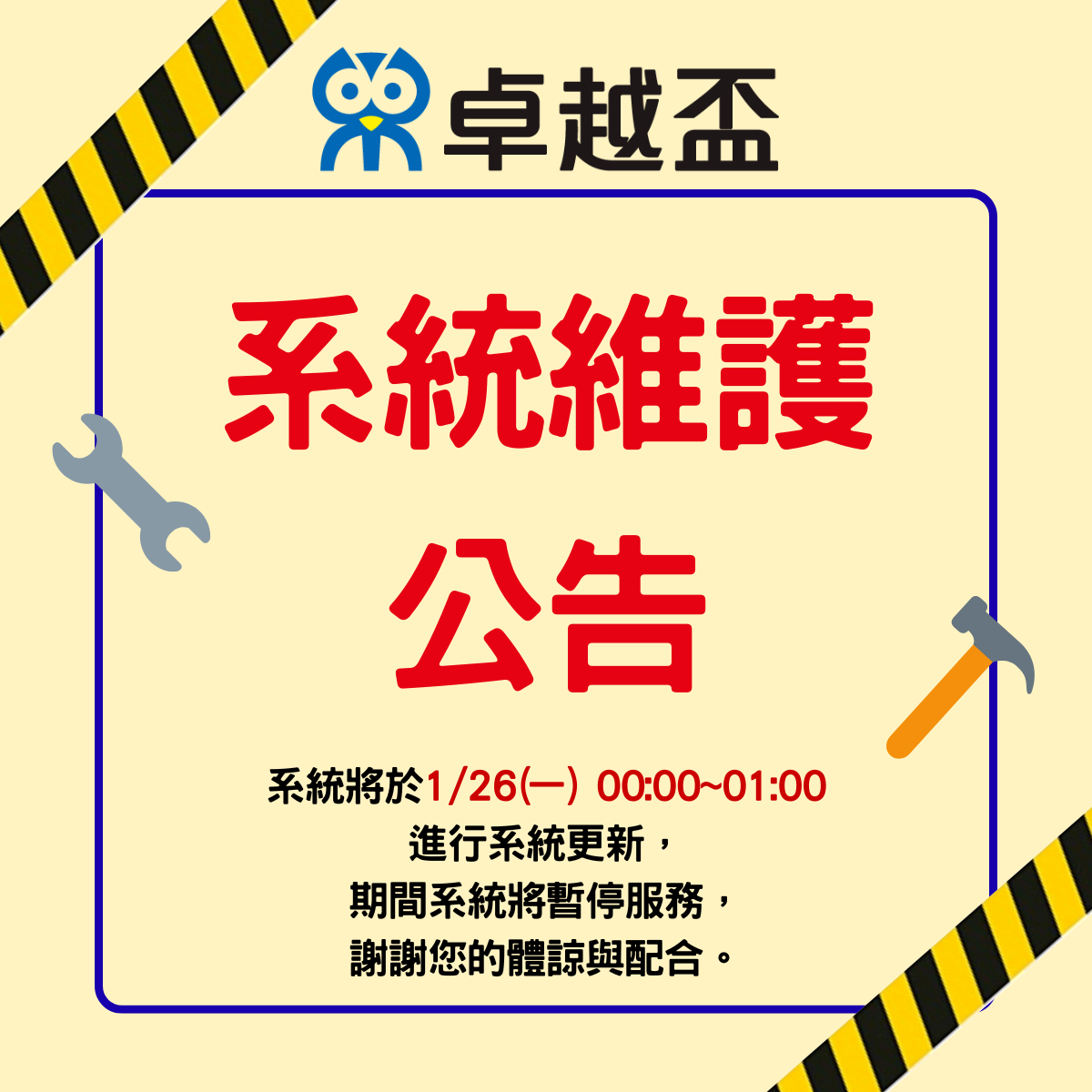 1/26 系統維護公告